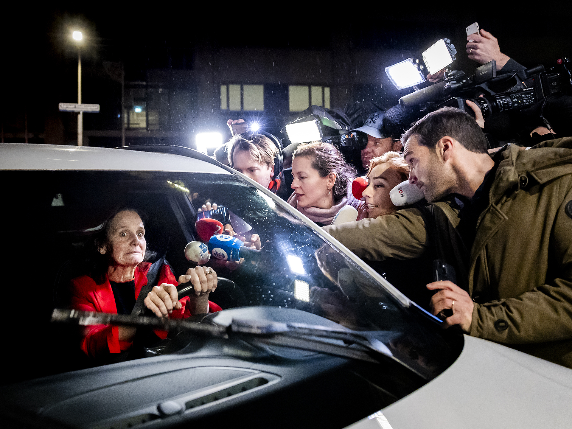 ‘Hoe goed je foto ook is, het nieuwsmoment moet allereerst belangrijk zijn. Ik wist dat er een crisisoverleg aankwam in het Catshuis na het aftreden van staatssecretaris Nora Achahbar. Ik stond op dat moment te wachten op alle betrokken partijen. Je staat daar met allemaal andere fotografen en wil iets maken wat uniek is. Mijn doel is altijd een combinatie van vorm en inhoud. Terwijl Van Vroonhoven aan kwam rijden met al die fotografen om haar auto, drukte ik af. Wat daar nu gebeurt, is niet direct duidelijk. Kijkt ze zo verschrikt vanwege het crisisoverleg of door de vele fotografen om haar auto? Het kan allebei.’
