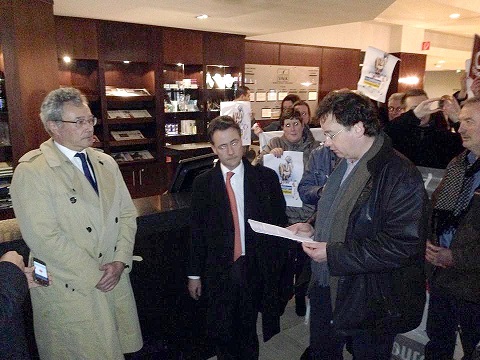 ‘’Genoeg is genoeg. We hebben het helemaal gehad en zien geen toekomst voor de Limburgse kranten binnen Mecom. Wees een man, hou je aan je woord en neem je geld; verkoop ons aan Concentra.” Met deze harde woorden ontving Serge Sekhuis van het actiecomité van Dagblad de Limburger en het Limburgs Dagblad maandagmorgen de top van Mecom tijdens een demonstratie bij hotel Van der Valk in Urmond. Circa 150 medewerkers van de Limburgse kranten woonden de manifestatie bij. Ze droegen spandoeken, posters en riepen leuzen. Topman Rory Macnamara en rechterhand Keith Allen hoorden de woorden aan om zich daarna terug te trekken voor overleg met commissaris Leon Frissen van MGL.