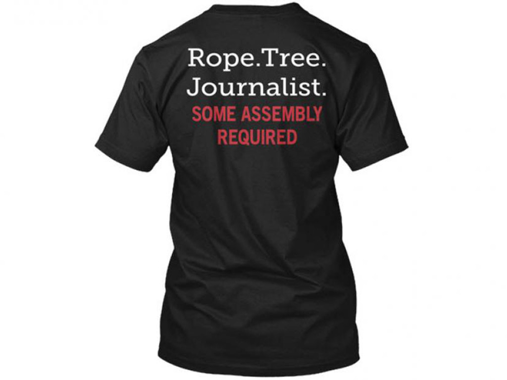 De Amerikaanse winkelketen Wallmart stopt met de verkoop van een t-shirt met daarop een tekst die geweld tegen journalisten propageert. Op het shirt staat in grote witte letters “Rope. Tree. Journalist”, met daaronder de regel “Some assembly required”. Na het zien van het shirt trok de Radio-Television Digital News Association (RTDNA) aan de bel bij de winkelketen, die het product daarop binnen enkele uren uit zijn webshop verwijderde. Het shirt werd via Wallmart verkocht door Teespring, een derde partij. De t-shirtshop heeft na de ophef de slogan en het shirt ook van zijn eigen site verwijderd. Meer bij Broadcasting Cable